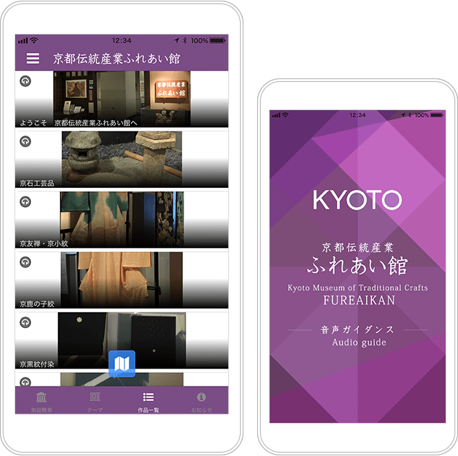 京都が生み出した伝統工芸の美と技を紹介する「京都伝統産業ふれあい館」の音声ガイダンス・アプリです。
