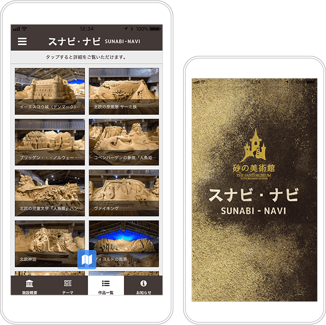 「スナビ・ナビ」は砂の美術館をより楽しんでいただくための無料音声ガイダンスアプリです。