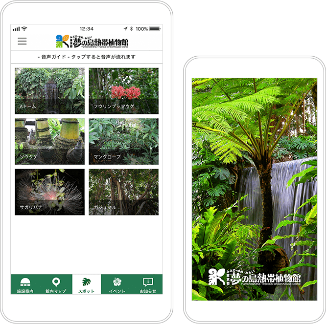 東京都夢の島熱帯植物館 様 東京都夢の島熱帯植物館音声ガイドアプリ 夢の島熱帯植物館をより楽しんでいただく為の無料音声ガイドアプリです。熱帯地域の魅力あふれる植物を身近に感じられるような情報を、写真とともにご紹介します。 サポートサイト